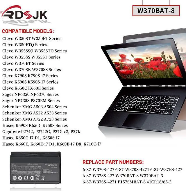 Compatible Models: Clevo W350ST W350ET W350ETQ W355SSQ W355STQ W355SS W355ST Series, Clevo W370ET W370SK W370SS Series, Clevo K790S K790S-i7 Series, Clevo K590S K590S-I7 Series, Clevo K650C K660E Series, Sager NP6350 NP6370 Series, Sager NP7358 P370EM Series, Schenker XMG A503 A504 Series, Schenker XMG A522 A523 Series, Schenker XMG A722 A723 Series, Hasee K590S K650C K750S Series, Gigabyte P2742, P2742G, P27G v2, P27K, Hasee K650C-I7 D1, K650S-i7, Hasee K660E, K660E-i7 D1, K660E-I7 D8, K710C-i7
