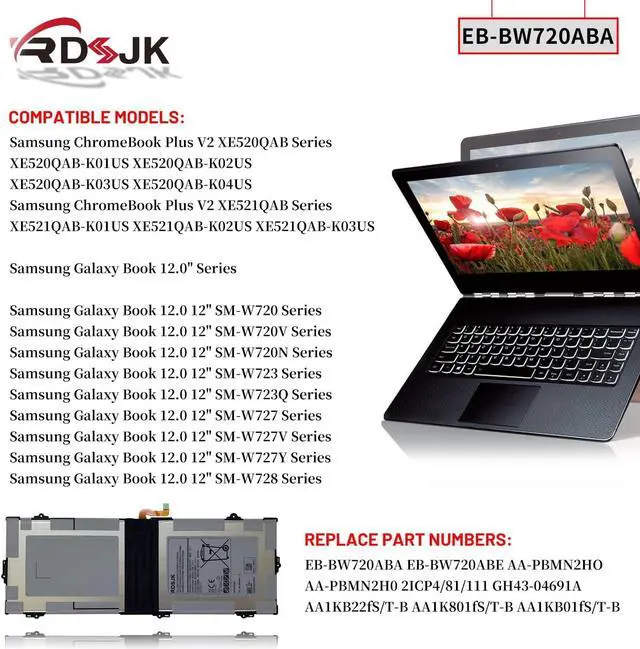 Compatible Models: Samsung Galaxy Book 12.0" SM-W720 SM-W723 SM-W723Q SM-W727V Series; Samsung Chromebook Plus V2 XE520QAB XE521QAB