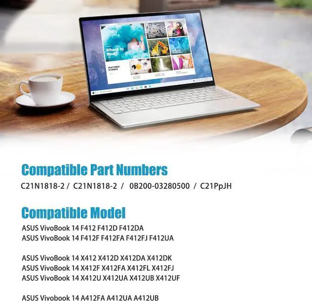 Compatible with Asus VivoBook 14 F412 F412D F412DA F412DK F412F F412FA F412FJ F412FL F412U F412UA Series Asus VivoBook 14 A412 A412D A412DA A412DK A412F A412FA A412FL A412FJ A412U A412UA Series Asus VivoBook 14 X412 X412D X412DA X412DK X412F X412FA X412FJ X412FL Series Asus VivoBook 14 X412U X412UA X412UB X412UF X412J X412JA Series Asus VivoBook S14 S412F S412FA S412FJ S412FL S412D S412DA S412DK S412U S412UA Series Asus VivoBook 14 R424D R424DA R424F R424FA Series