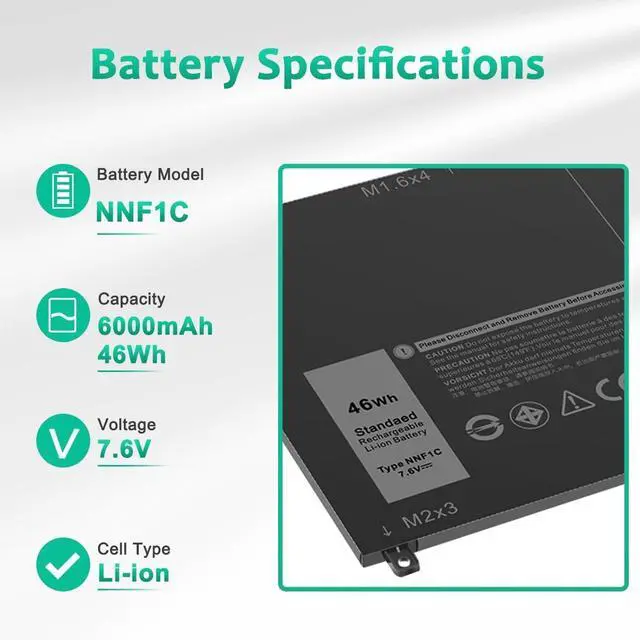 LONG-LASTING BATTERY LIFE:With 7.5V,capacity (5940mAh/46Wh/4-Cell),the(NNF1C) battery ensures all-day power for your laptops in a factory-fresh, never-used battery pack designed for maximum performance.