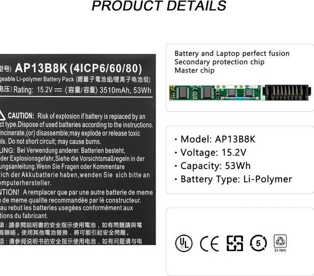 Replace Part Numbers: AP13B3K AP13B8K AL13B3K 4ICP6/60/78 4ICP6/60/80 KT.00403.015 KT00403015 KT.00403.018 KT.00403.035 KT.0040G.001 KT.00403.013 KT.00403.01