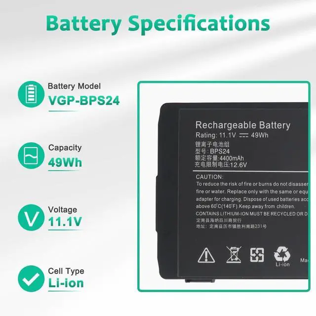 LONG-LASTING BATTERY LIFE:With 11.1V,capacity ( 4400mAh/6-Cell),the(VGP-BPS24) battery ensures all-day power for your laptops in a factory-fresh, never-used battery pack designed for maximum performance.