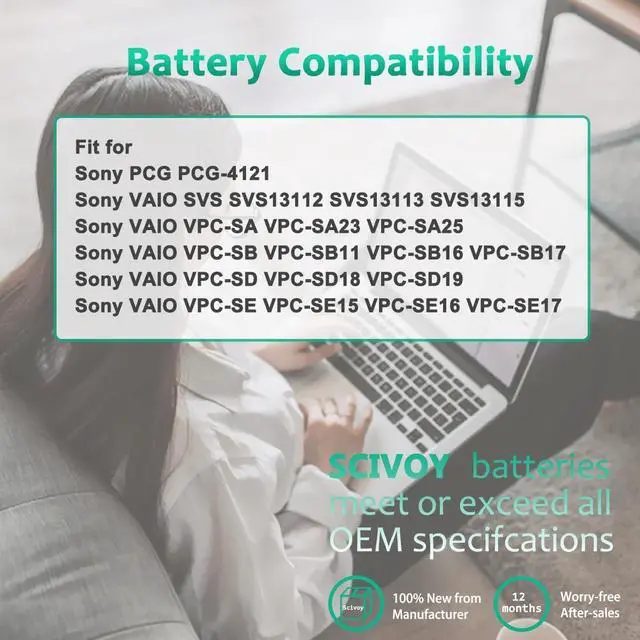 GUARANTEED FIT THESE LAPTOP MODELS:Compatible with Sony PCG PCG-41215L, PCG-41216L PCG-41216W PCG-41217 PCG-41217L PCG-41414M; Sony VAIO SVS SVS13112EGB, SVS13112EHW, SVS13112ENB, SVS13113FW; Sony VAIO VPC-SA VPC-SA23GW/BI, VPC-SA23GW/T, VPC-SA25EC, VPC-SA25EC/SI; Sony VAIO VPC-SB VPC-SB11FX/B, VPC-SB11FX/W, VPC-SB11FXB, VPC-SB16FG; Sony VAIO VPC-SD VPC-SD18EC, VPC-SD18EC/B, VPC-SD18EC/L, VPC-SD18EC/P; Sony VAIO VPC-SE VPC-SE15FG/B, VPC-SE15FH/B, VPC-SE16FW/B,VPC-SE16FW/S.