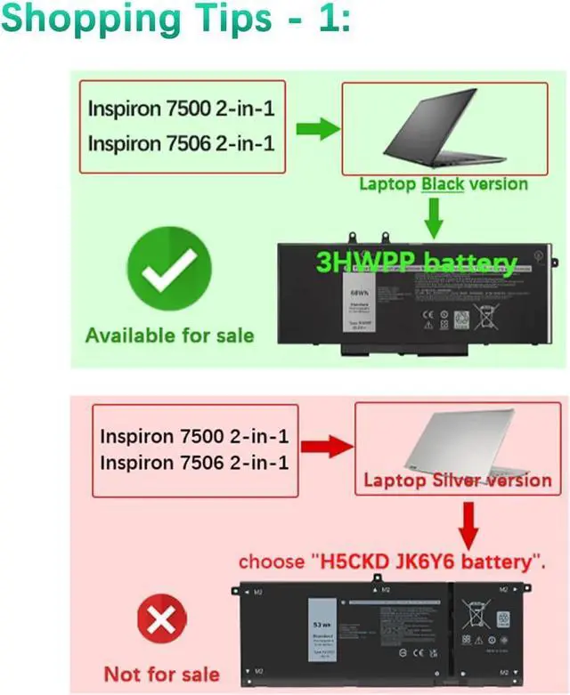 PERFECT-FIT BATTERY MODELSSupport for 3HWPP 03HWPP 10X1J N2NLL 1VY7F 3YNXM 3PCVM 451-BCMN P98F001 P80F004 P98G008.