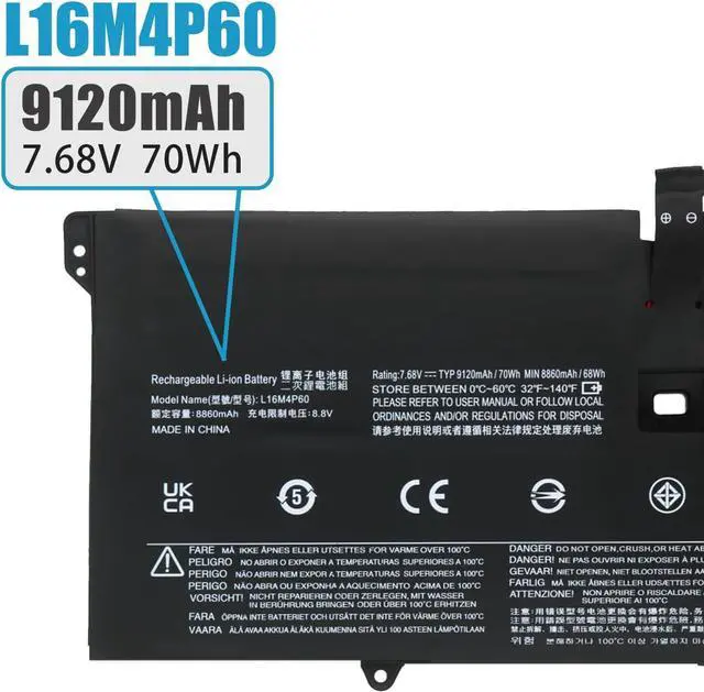 LONG-LASTING BATTERY LIFE- With 7.68V capacity ( 70Wh/9120mAh ), The ( L16M4P60 ) battery ensures all-day power for your laptops in a factory-fresh, Never-used battery pack designed for maximum performance.