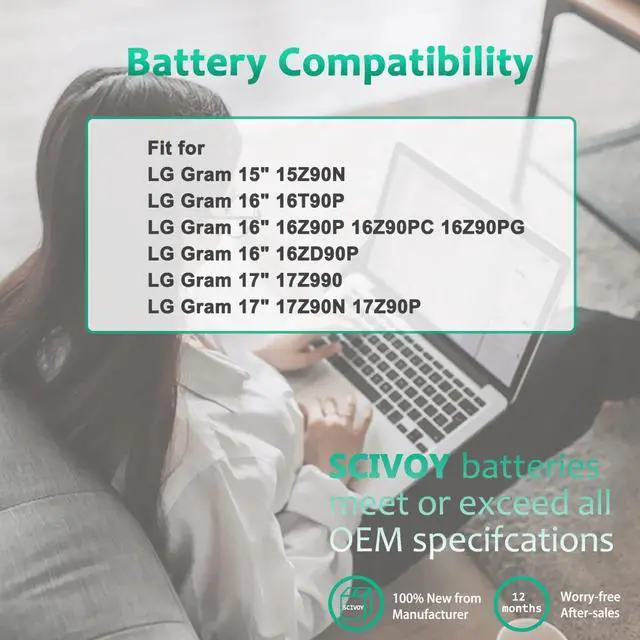 LG Gram 17 17Z990 series:17Z990-R.AAS8U1, 17Z990-R.AAS7U1, 17Z990-R.AAS9U1, 17Z990-RAAS9U1LG Gram 15 15Z90N series:15Z90N-R.AAS8U1, 15Z90N-U.ARS5U1LG Gram 16 16T90P series:16T90P-K.AAE7U1, 16T90P-GAF6K, 16T90P-GA5BK, 16T90P-KA75J, 16T90P-GA7DKLG Gram 16 16ZD90P series:16ZD90P-GX56K, 16ZD90P-GX70K, 16ZD90P-GX76K, 16ZD90P-GX50KLG Gram 16 16Z90P series: 16Z90P-GA50K, 16Z90P-GP70ML, 16Z90P-KA55J1,16Z90P-GA5BKLG Gram 17 17Z90N series:17Z90N-VA70K, 17Z90N-VA50K, 17Z90N-VP70ML, 17Z90N-VA76K, 17Z90N-V.AA77G, 17Z90N-R.AAS9U1LG Gram 17 17Z90P series:17Z90P-K.AAB8U1, 17Z90P-KA78J COMPATIBILITY BATTERY MODEL LIST: