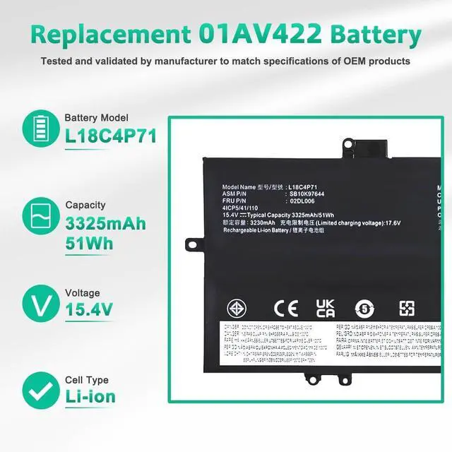 PERFECT-FIT BATTERY MODELS:Support for L18M4P72 L18C4P71 L18L4P71 02DL004 02DL005 02DL006 SB10K97642 SB10K97643 SB10K97644 SB10T83173 SB10T83174 5B10W13930 5B10W13931 5B10W13932.