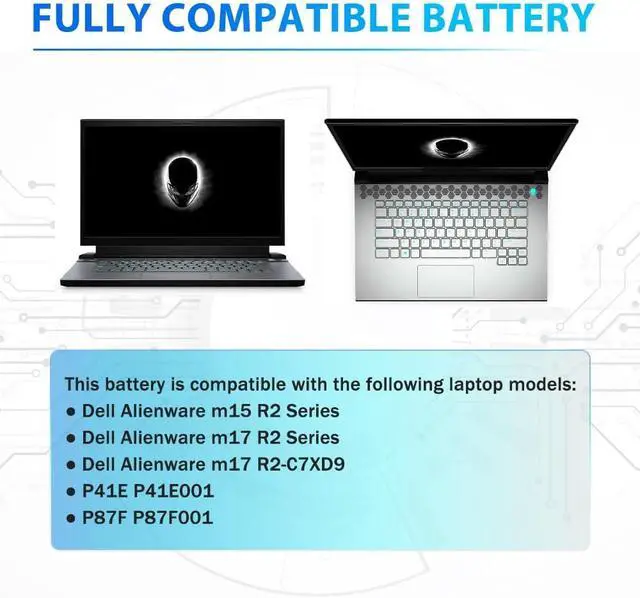 GUARANTEED FIT THESE LAPTOP MODELSCompatible with Dell Alienware M17 R2 Series, Dell Alienware M15 R2 Series, Dell P41E001 P87F001 P41E P87F.