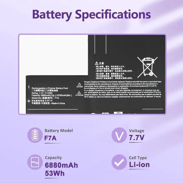 LONG-LASTING BATTERY LIFE: With 8.8Vcapacity (53Wh/6880MAh), the (F7A F7A2 F7G) battery ensures all-day power for your laptops in a factory-fresh, never-used battery pack designed for maximum performance.