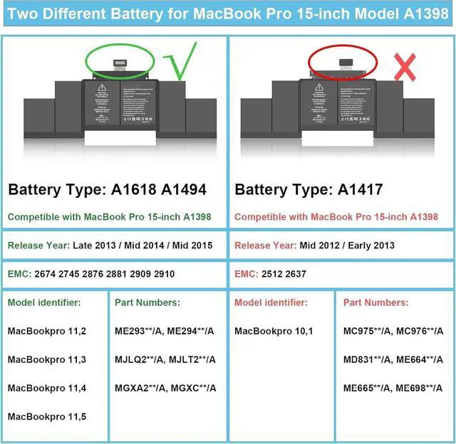 GUARANTEED FIT THESE LAPTOP MODELS: Fit for MacBook Pro 15" Model A1398 Late 2013, Mid-2014, Mid 2015 Version, Not for Mid-2012/Early 2013 Version), EMC: 2674, 2745, 2876, 2881, 2909, 2910. Model Identifier: MacBookPro11,2 & MacBookPro11,3 & MacBookPro11,4 & MacBookPro11,5.