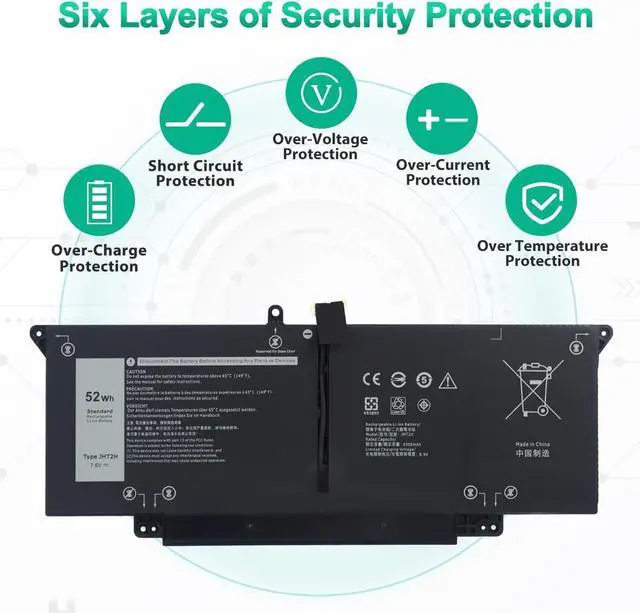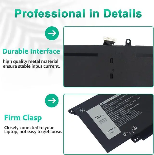 LONG-LASTING BATTERY LIFE:With 7.6V,capacity (52Wh/6500mAh),the(JHT2H) battery ensures all-day power for your laptops in a factory-fresh, never-used battery pack designed for maximum performance.