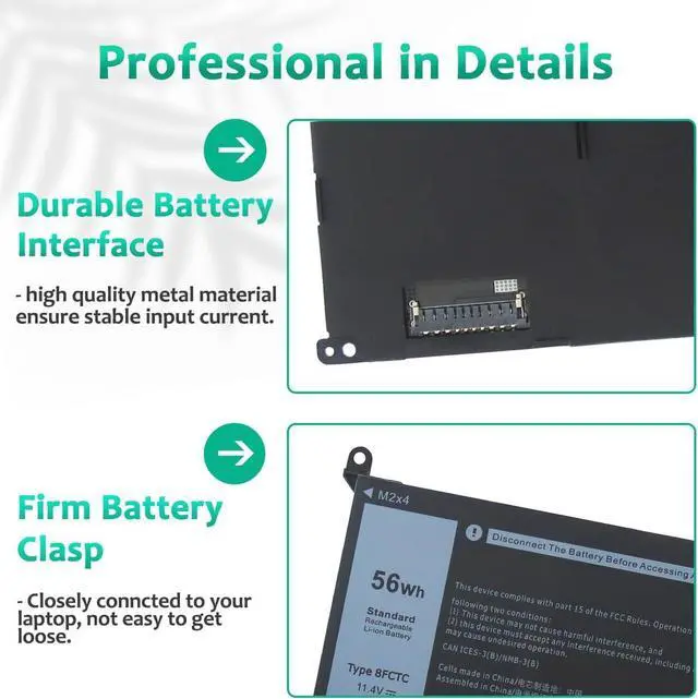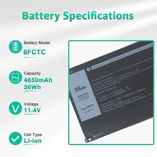 LONG-LASTING BATTERY LIFE- With 11.4V capacity ( 56Wh/4650mAh ), the ( 8FCTC ) battery ensures all-day power for your laptops in a factory-fresh, never-used battery pack designed for maximum performance.