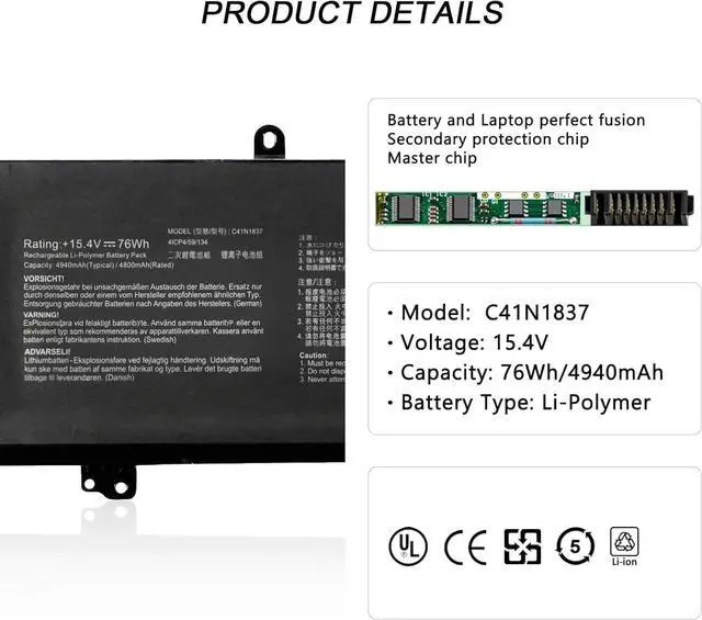 Compatible Part Number:Replacement for C41N1837 0B200-03380200 0B200-03380100 0B200-03380300 4ICP4/59/134 Laptop Battery