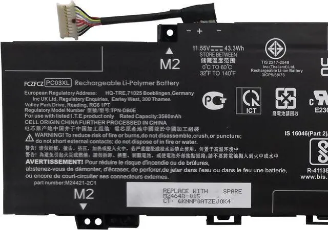 Replacement for Part NumberPC03XL HSTNN-OB1W M24421-271 M24421-AC1 M24648-005 PC03043XL TPN-DB0E PCO3XL 3ICP5/68/73 (NOTE: Please kindly open your laptop back cover to confirm your original battery model is the same as listed here. Thanks!)