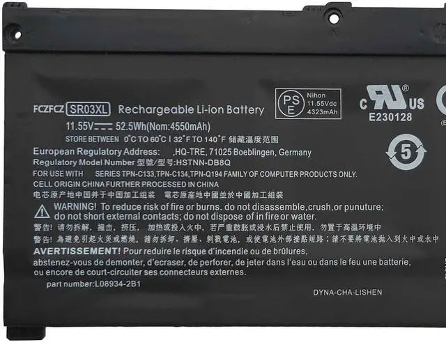 Replacement for Part NumberSR03XL HSTNN-DB8Q L08855-855 L08934-2B1 TPN-C133 TPN-C134 TPN-Q194