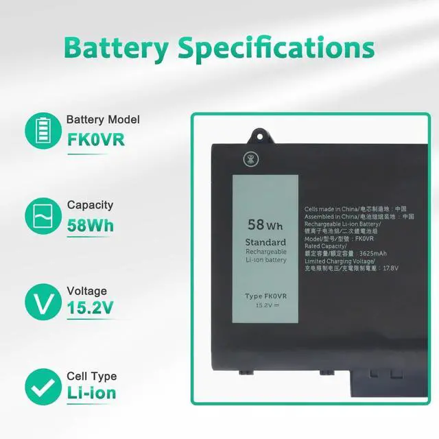 LONG-LASTING BATTERY LIFE- With 15.2V capacity ( 48Wh/3625mAh ), The ( FK0VR ) battery ensures all-day power for your laptops in a factory-fresh, Never-used battery pack designed for maximum performance.