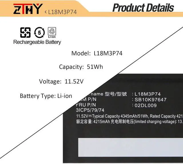 Compatible Part Number: L18C3P72 L18C3P71 L18L3P73 L18M3P73 L18M3P74 L18M4P73 L18M4P74 02DL007 02DL008 02DL009 02DL010 SB10K97645 SB10K97646 SB10K97647 SB10K97648 SB10T83197 SB10T83122 SB10T83148 SB10T83149 SB10W51929 SB10W51928 5B10W51829 5B10W51830 5B10W13906 5B10W13905 5B10W13877 5B10W13954.