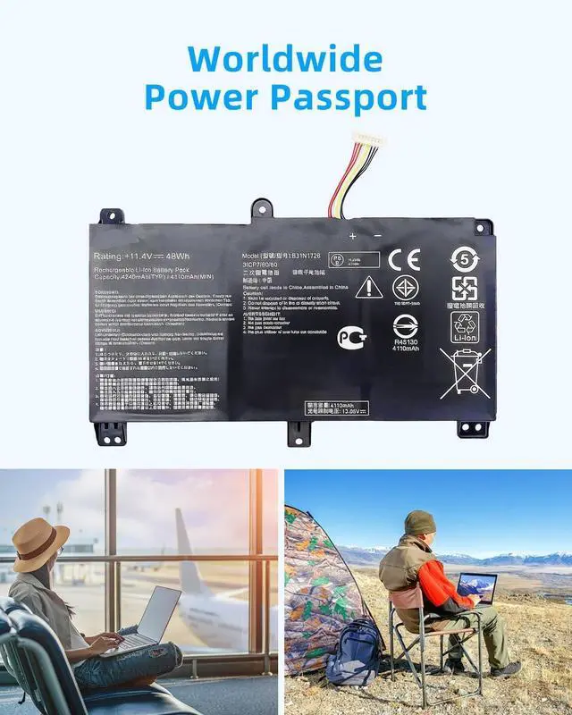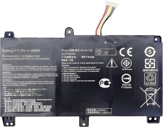 SPECIFICATION : Model Name: B31N1726-2 Voltage: 11.4V. Capacity: 48Wh; Grade A cells ensure fast charges and low power consumption; Built-in circuit protection ensures both safety and stability. Condition: 100% New; Battery life: More than 1000 cycles.
