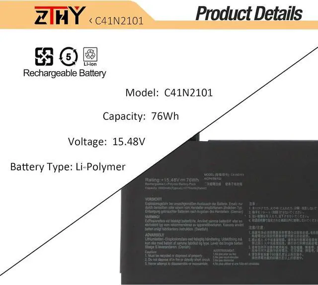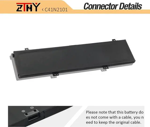 Specifications: Battery type: Li-Polymer; Color: Black. Voltage: 15.48V. Capacity: 76Wh. New from Manufacturer. Up to 500 recharge cycles over the life of the battery. Compatible Part Number: C21N1818-3 B21N1818-3