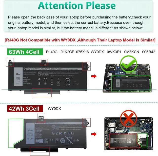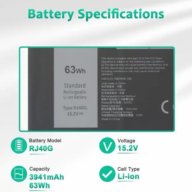 LONG-LASTING BATTERY LIFE- With 15.2V capacity ( 63Wh/3941mAh ), The ( RJ40G ) battery ensures all-day power for your laptops in a factory-fresh, Never-used battery pack designed for maximum performance.