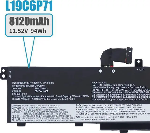 LONG-LASTING BATTERY LIFE: With 11.55V capacity ( 94Wh/8095mAh ), The ( L19C6P71 ) battery ensures all-day power for your laptops in a factory-fresh, Never-used battery pack designed for maximum performance.