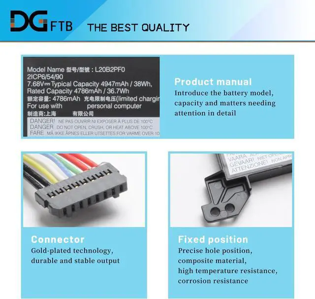 DG QualityGrade A cells mitigate the risk of battery leakage and maximize output stability. Built-in circuit protection, enhances safety of usage and extends battery life.