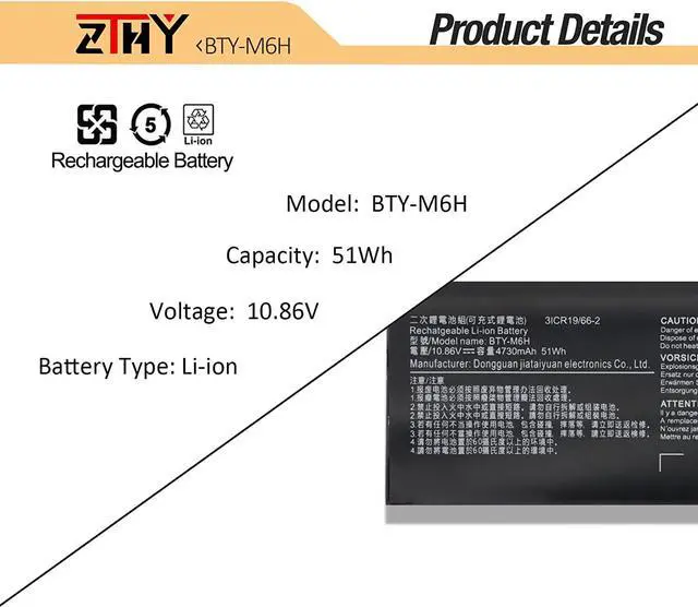 Compatible Part Number: BTY-M6H 3ICR19/65-2 3ICR19/66-2 MS-16J1 MS-16J2.