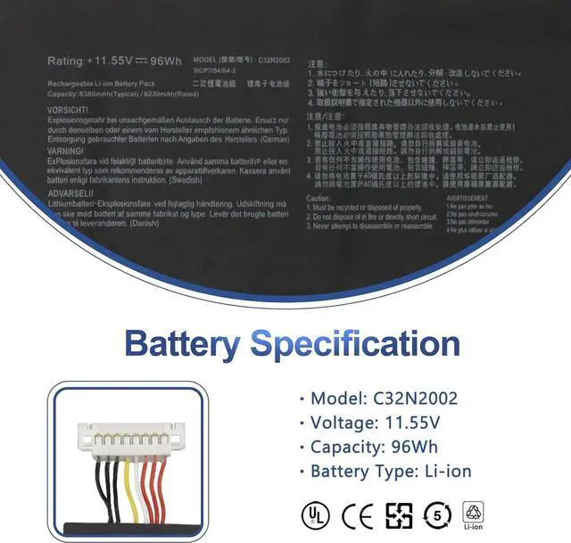 11.55V 96Wh C32N2002 Batería de Repuesto para computadora portátil Compatible for ASUS ZenBook Pro 15 UX535 UX535L UX535LI 15 UX564 UX564EH UX564PH UX564EI / Pro 15 UP6502 UP6502Z