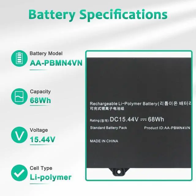 LONG-LASTING BATTERY LIFE:With 15.44V,capacity (67.0Wh/4340mAh),the(AA-PBMN4VN) battery ensures all-day power for your laptops in a factory-fresh, never-used battery pack designed for maximum performance.