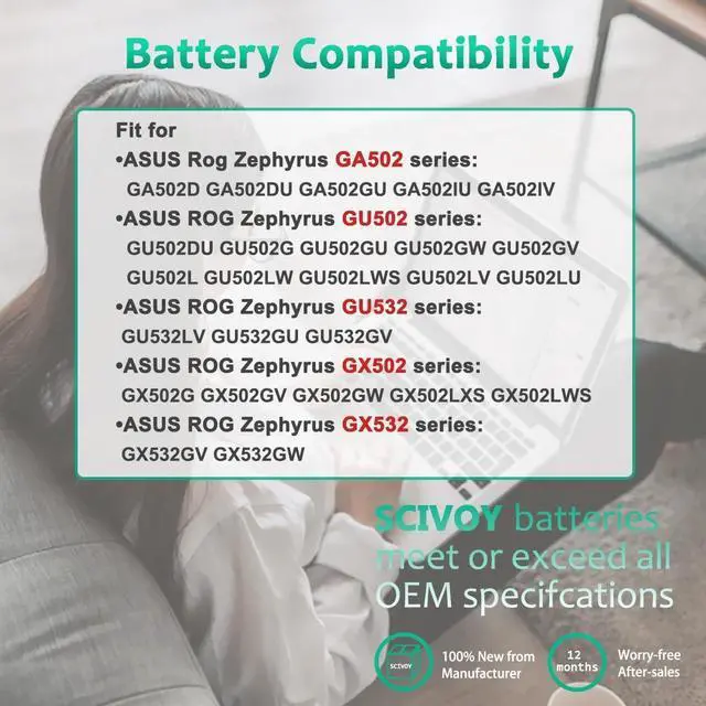 GUARANTEED FIT THESE LAPTOP MODELSCompatible with ASUS Rog Zephyrus GA502 GA502D GA502DU GA502GU GA502IV GA502IU GA532DU series; ASUS Rog Zephyrus GU502 GU502DU GU502GU GU502GW GU502GV GU502LV GU502LW GU502LU GU532LV GU532GU GU532GV Series; ASUS Rog Zephyrus GX502 GX502LXS GX502LWS GX502GV GX502GW series; ASUS Rog Zephyrus GX532 GX532GV GX532GW series; ASUS TUF DASH F15 FX516PR FX516PM; ASUS ProART STUDIOBook 15 H500GV H500GV W500GV W500G5T Series.