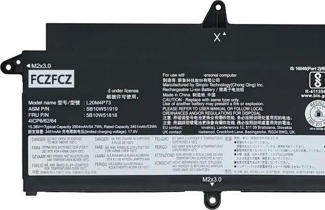 Replacement for Part NumberL20M4P73 SB10W51954 5B10W51853 SB10W51919 5B10W51818 L20L4P73 SB10W51953 5B10W51852 SB10W51918 5B10W51817 L20C4P73 SB10W51955 5B10W51854 SB10W51920 5B10W51819 L20D4P73 SB10W51956 5B10W51855 SB10W51921 5B10W51820 L20C4P74 SB10W51922 5B10W51821 L20D4P74 SB10W51923 5B10W51822 L20D3P72 SB10W51960 5B10W51859 SB10W51948 5B10W51825 L20C3P72 SB10W51959 5B10W51858 SB10W51947 5B10W51824 (NOTE: Please kindly open your laptop back cover to confirm your original battery model is the same as listed here. Thanks!)