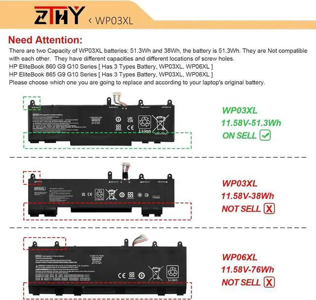 Compatible Part Number: WP03XL HSTNN-0B2J HSTNN-LB8W HSTNN-LB9C M64305-AC1 M64305-421 M73466-005 M64304-422 M64304-2D1 L60373-005 L78555-005 31CP6/60/75
