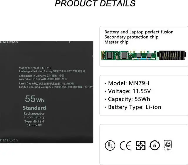 Compatible Part NumberReplacement for MN79H J7H5M 0J7H5M NXRKW 0NXRKW Laptop Battery.