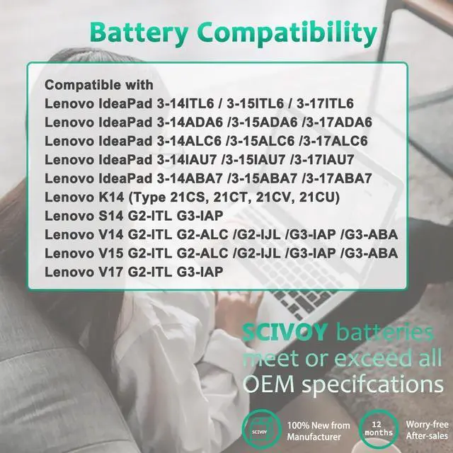 GUARANTEED FIT THESE LAPTOP MODELS:Compatible with Lenovo IdeaPad 3-14ITL6 3-15ITL6 3-17ITL6 Series,Lenovo IdeaPad 3-14ADA6 3-15ADA6 3-17ADA6 Series,Lenovo IdeaPad 3-14ALC6 3-15ALC6 3-17ALC6 Series,Lenovo IdeaPad 3-14IAU7 3-15IAU7 3-17IAU7 Series,Lenovo IdeaPad 3-14ABA7 3-15ABA7 3-17ABA7 Series,Lenovo K14 (Type 21CS,21CT,21CV,21CU) Series, Lenovo S14 G2-ITL G3-IAP Series, Lenovo V14 G2-ITL G2-ALC G2-IJL G3-IAP G3-ABA Series, Lenovo V15 G2-ITL G2-ALC G2-IJL G3-IAP G3-ABA Series, Lenovo V17 G2-ITL G3-IAP Series.