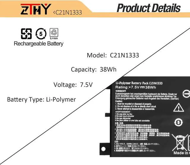 Compatible Part Number: ASUS C21N1333 C21NI333 0B200-00860000 0B20000860000 0B200-00860100 0B20000860100 0B200-00860200 0B20000860200 0B200-00860300 0B20000860300 0B200-00860400 0B20000860400 2ICP4/63/134 PP21LG150Q-1 PP21LG150Q1 Laptop Battery.