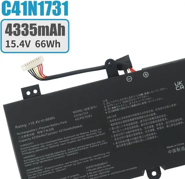 LONG-LASTING BATTERY LIFE:With 15.4V,capacity (66Wh/4335mAh),the(C41N1731) battery ensures all-day power for your laptops in a factory-fresh, never-used battery pack designed for maximum performance.