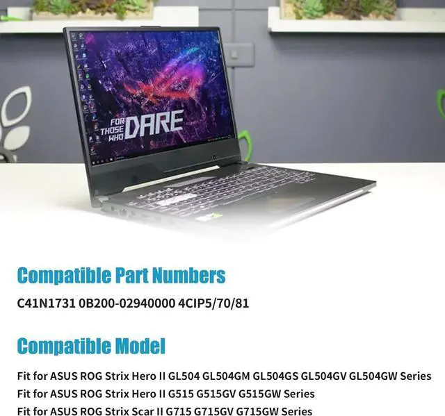 GUARANTEED FIT THESE LAPTOP MODELS:Compatible with ASUS ROG Strix Hero II GL504 GL504GM GL504GS GL504GV GL504GW, ASUS ROG Strix HERO II G515 G515GV G515GW, ASUS ROG Strix Scar II G715 G715GV G715GW Series.