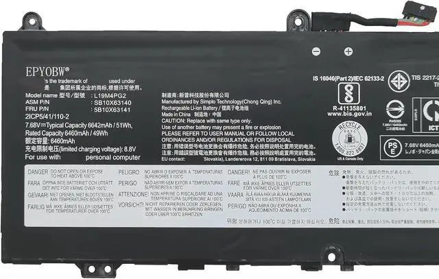 SpecificationsBattery Model: L19L4PG2 / Voltage: 7.7V / Capacity: 51Wh 6624mAh 4-Cell / Color: Black / Condition: Brand New.