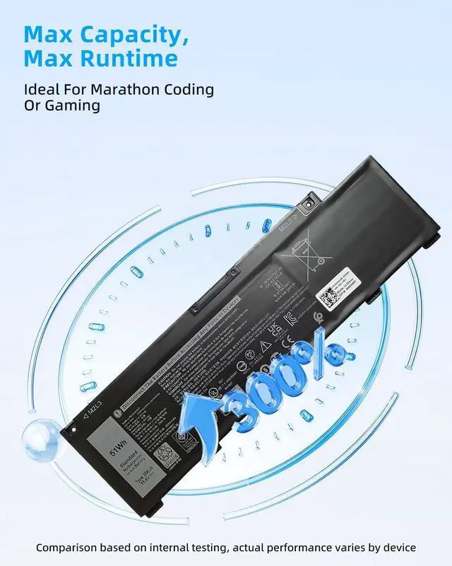 SPECIFICATION : Model Name: 266J9 Voltage: 11.4V // Capacity: 51Wh/4255mAh; Grade A cells ensure fast charges and low power consumption; Built-in circuit protection ensures both safety and stability. Condition: 100% New; Battery life: More than 1000 cycles.