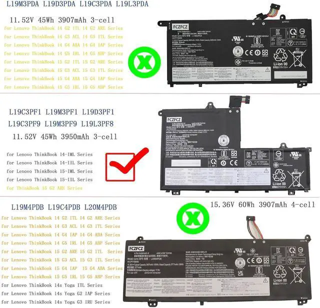 Replacement for Part NumberL19M3PF9 SB10X55573 5B10X55569 L19C3PF9 SB10X55571 5B10X55570 L19L3PF8 SB10X55568 5B10X55572 L19D3PF1 SB10V25236 5B10V25251 SB10W67203 5B10W67255 L19M3PF1 SB10V25248 5B10V25238 SB10W67411 5B10W67364 L19L3PF1 SB10V25247 5B10V25250 SB10W67400 5B10W67257 L19C3PF1 SB10V25242 5B10V25237 SB10W67322 5B10W67347 L19D3PF2 SB10V25235 5B10V25245 SB10W67408 5B10W67394 L19M3PF2 SB10V25233 5B10V25240 SB10W67304 5B10W67327 (NOTE: Please kindly open your laptop back cover to confirm your original battery model is the same as listed here. Thanks!)
