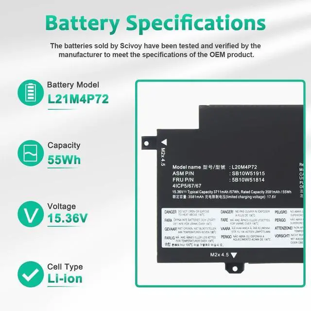 LONG-LASTING BATTERY LIFE- With 15.48V capacity ( 52.5Wh 3392mAh ), The ( L21M4P72 ) battery ensures all-day power for your laptops in a factory-fresh, Never-used battery pack designed for maximum performance.