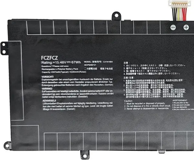 SpecificationsBattery Model: C41N1904 // Voltage:15.48V // Capacity:67Wh 4347mAh 4-Cell // Color:Black // Condition:Brand New.