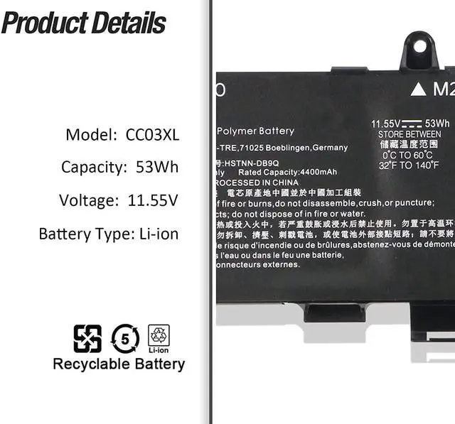 53Wh 11.55V CC03XL CC03053XL-PL Batería para portátil Compatível com HP EliteBook 830 835 840 845 G7 G8 Probook 635 Aero G7 G8 ZBook Firefly 14 MT32 Mobile Thin Client L78555-005 L77608-421