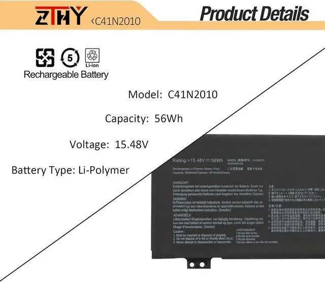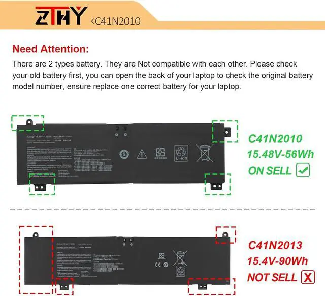 Note: There are 2 types battery(C41N2010 56Wh and C41N2013 90wh).They are Not compatible with each other.Please check your old battery first,you can open the back of your laptop to check the original battery model number,ensure replace one correct battery for your laptop