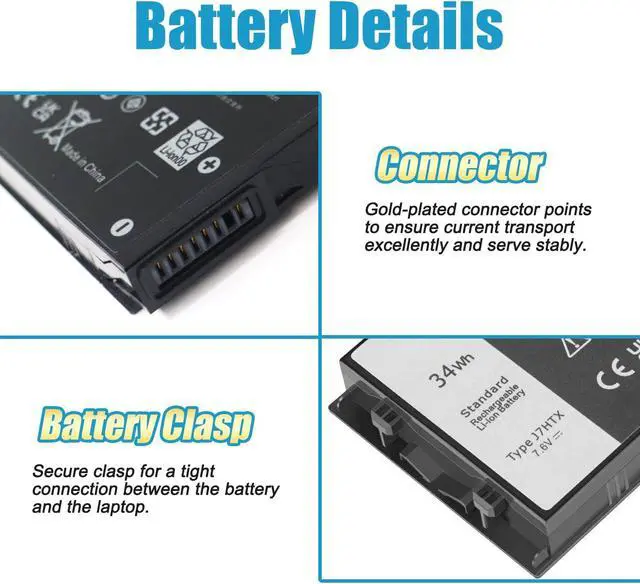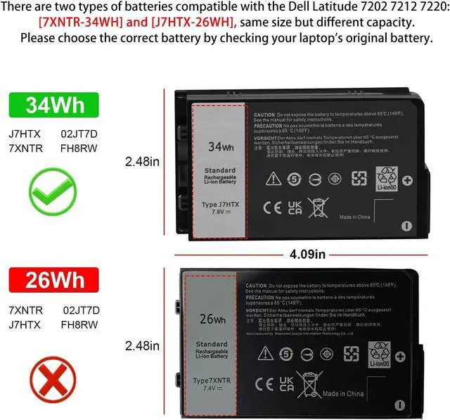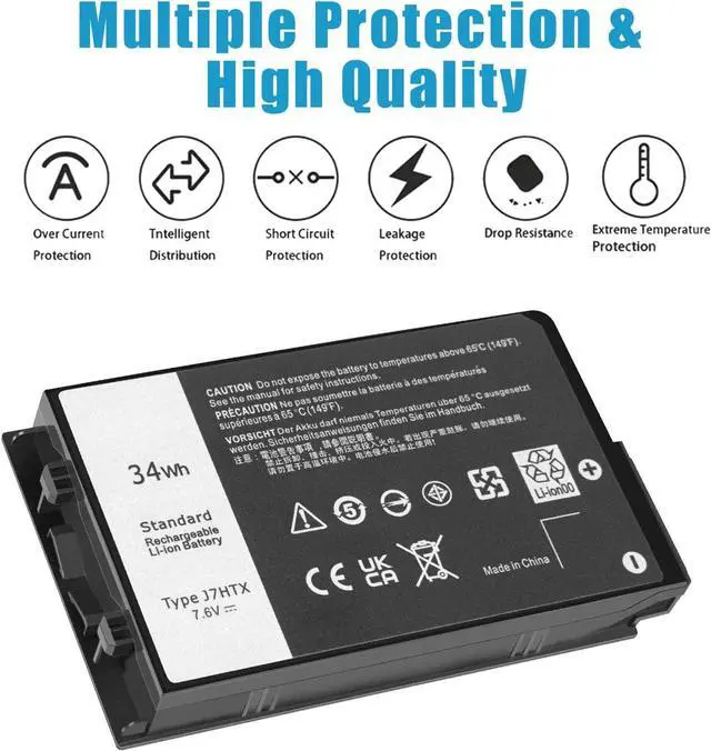 LONG-LASTING BATTERY LIFE: With 7.6V capacity ( 34Wh/4342mAh ), the ( J7HTX ) battery ensures all-day power for your laptops in a factory-fresh, never-used battery pack designed for maximum performance.