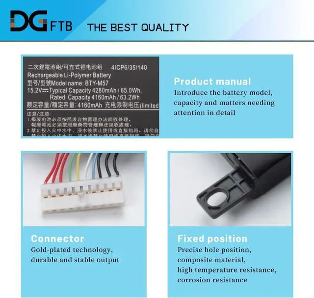 Replacement Battery TypeLi-ion; Voltage:15.2V; Capacity: 65Wh/4280mAh.