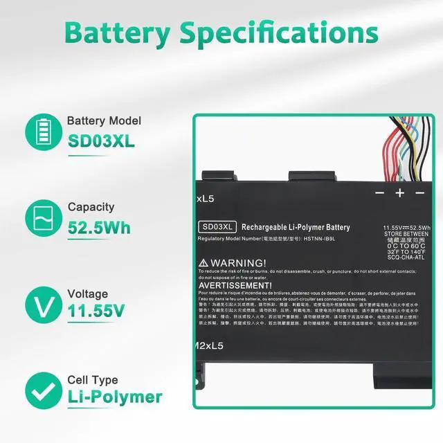 LONG-LASTING BATTERY LIFE:With 11.55V,capacity (52.5Wh), the(SD03XL) battery ensures all-day power for your laptops in a factory-fresh, never-used battery pack designed for maximum performance.