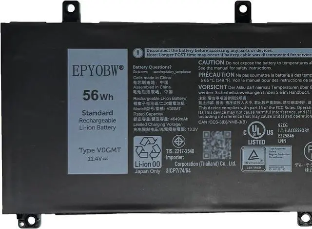 SpecificationsBattery Model:V0GMT / Voltage:11.4V / Capatity:56Wh 4900mAh 3-Cells / Color:Black / Condition:Brand New