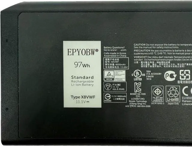 SpecificationsBattery: X8VWF / Voltage: 11.1V / Capatity: 97Wh 8550mAh 9-Cell / Color: Black / Condition: Brand New.