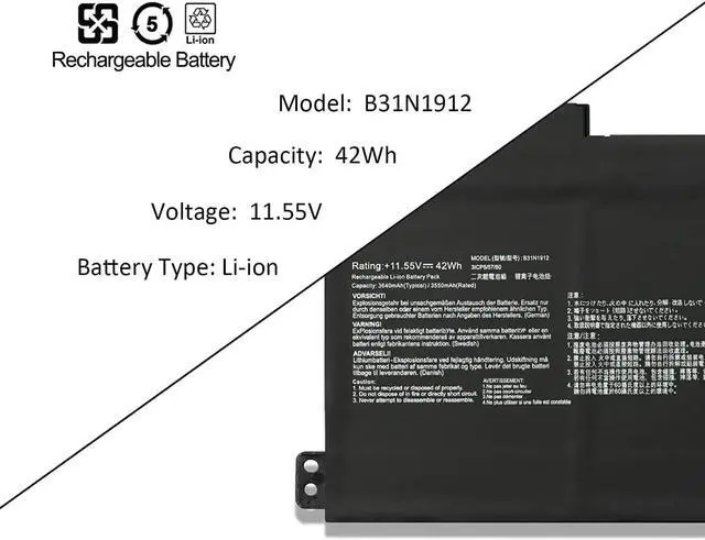 11.55V 42Wh B31N1912 C31N1912 0B200-03680000 Batería de Repuesto para computadora portátil Compatible for Asus 14 E410 E410MA-EK007TS E410KA L410 L410MA-BV037TS F414MA E510MA E510KA L510MA Series
